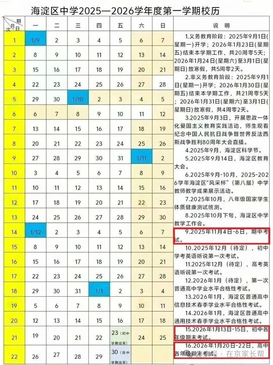 义务教育阶段寒假放假时间为:2026年1月24日(星期六)至3月1日(星期一),共5周零2天。2026小升初孩子需重视寒假前的期末考,海淀、西城、朝阳、丰台的DZ依赖期末成绩,家长需确保孩子五下、六上成绩达到门槛(尤其是数学),最好同时通过竞赛和证书提升竞争力。