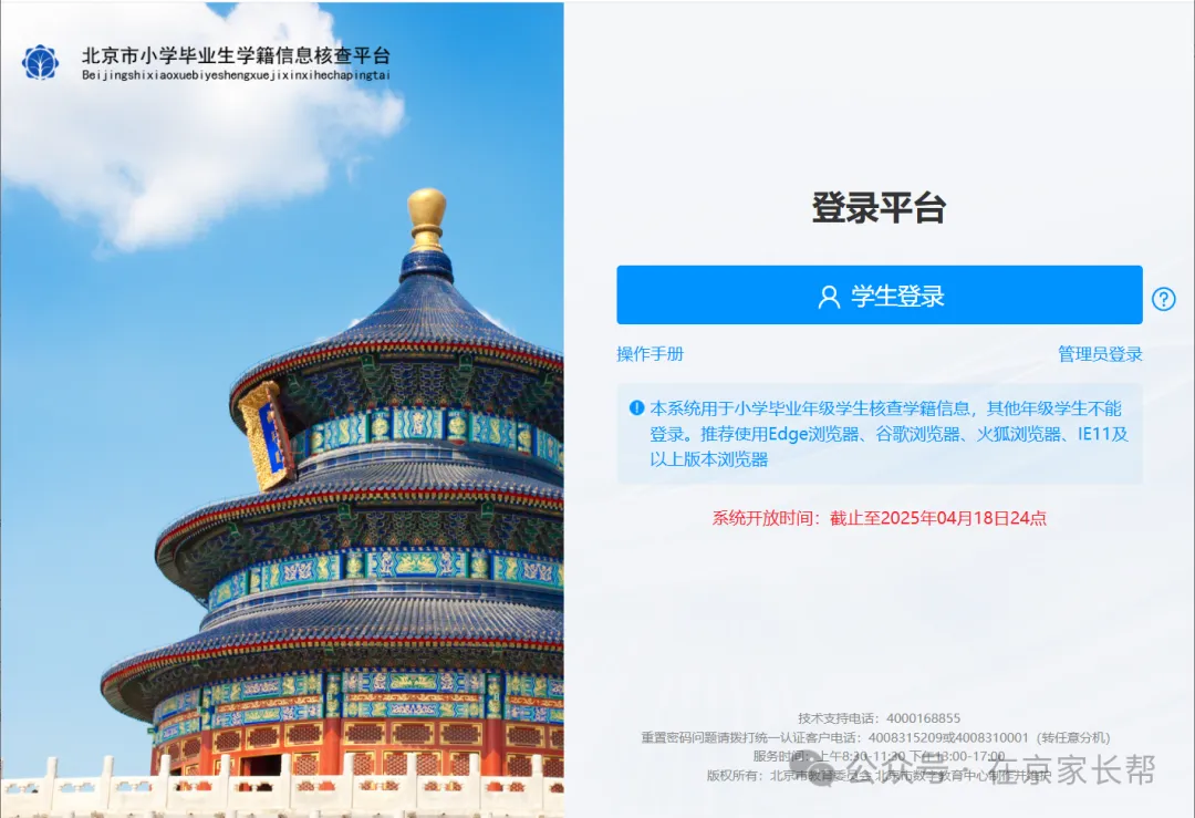 信息采集入口:https://yjrx.bjedu.cn,主要是针对新进京学生也就是没有北京学籍的京籍、非京籍学生。