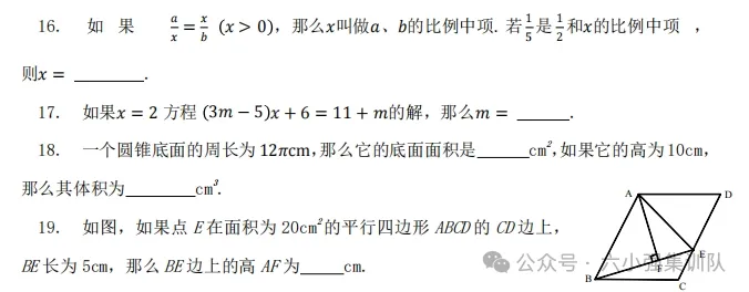 数学测试(90分钟):包含分数计算、比与比例、图形计算、年龄差、速度差、速度和、相遇追击结合题、立体图像展开等。