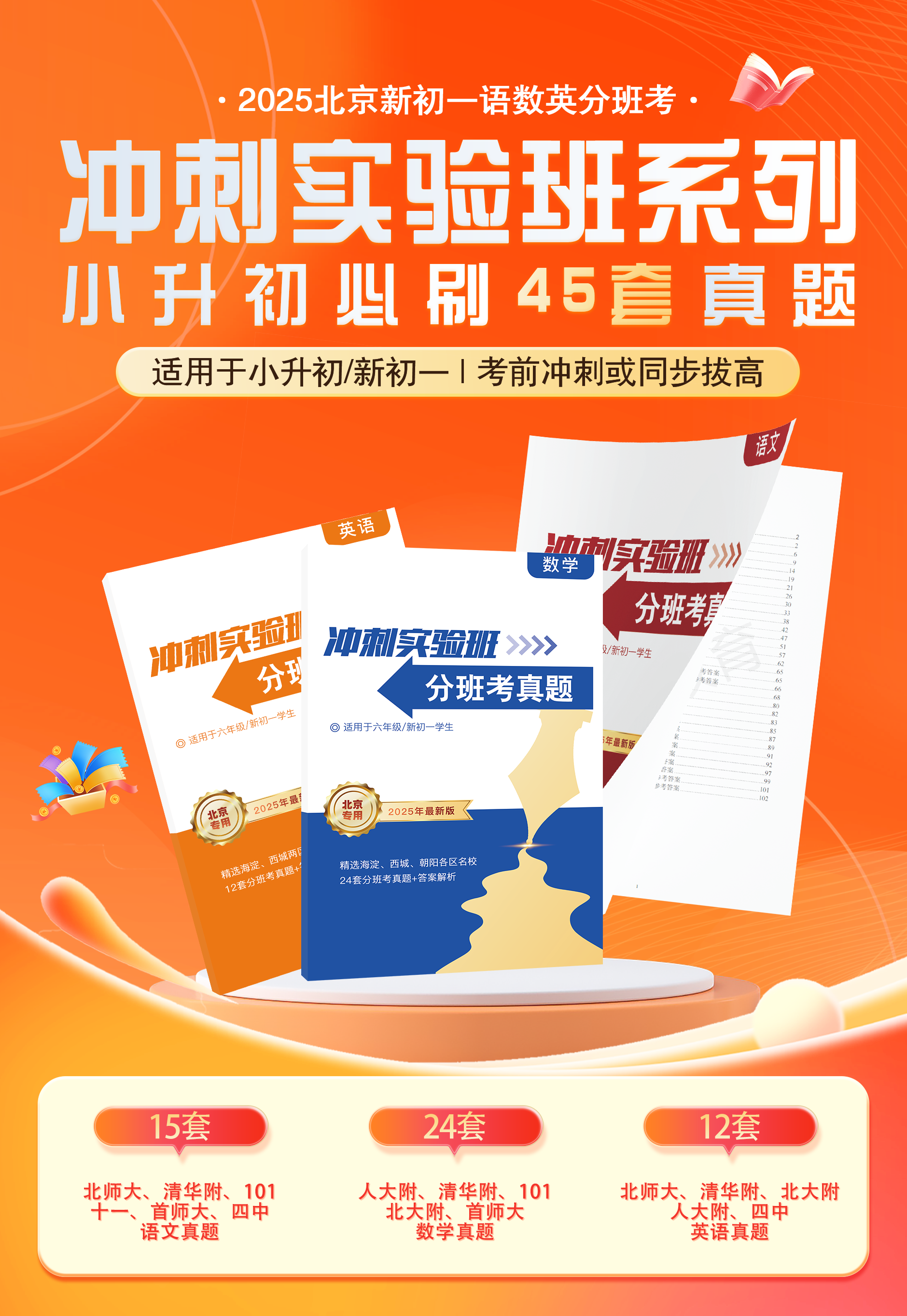 有很多家长说网络上真真假假的真题实在不好辨别,因此我们精选了RDF、BDF、国庆、斑点狗、SSF、4中、BSDSY等具有代表性牛校的内部分班考语、数、英真题,打造《冲刺实验班》系列书籍,帮助学生们提前熟知各学校考试特点及知识点侧重。