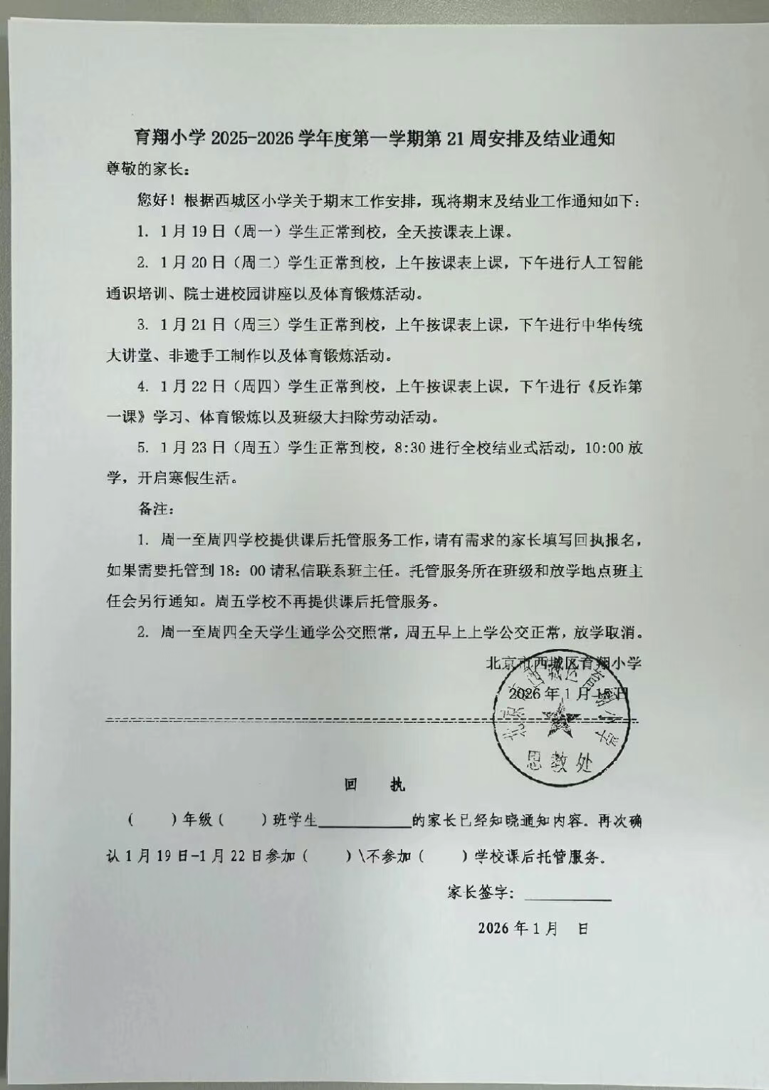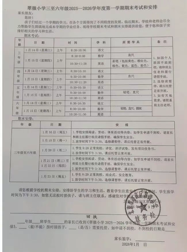 北京小升初信息网为大家带来多所小学2025-2026学年度第一学期结业时间安排,一起来看!