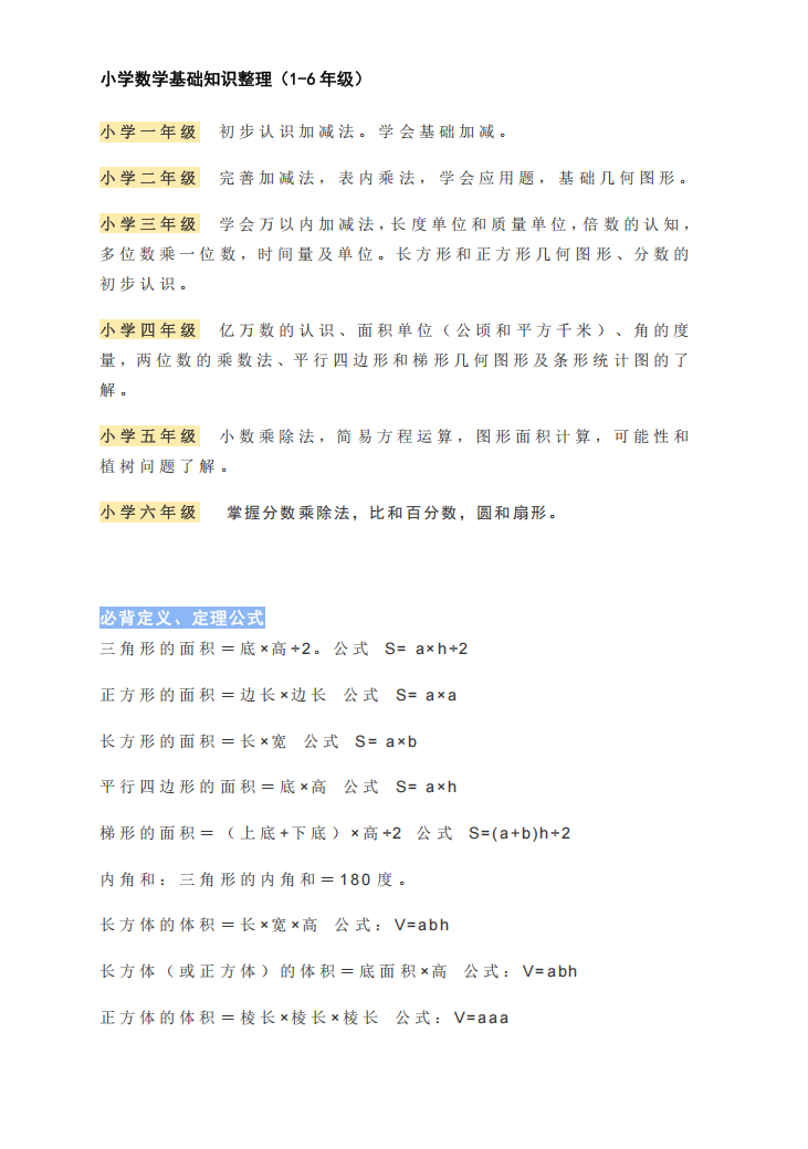 点击免费下载: 小学数学知识点及公式汇总.pdf
