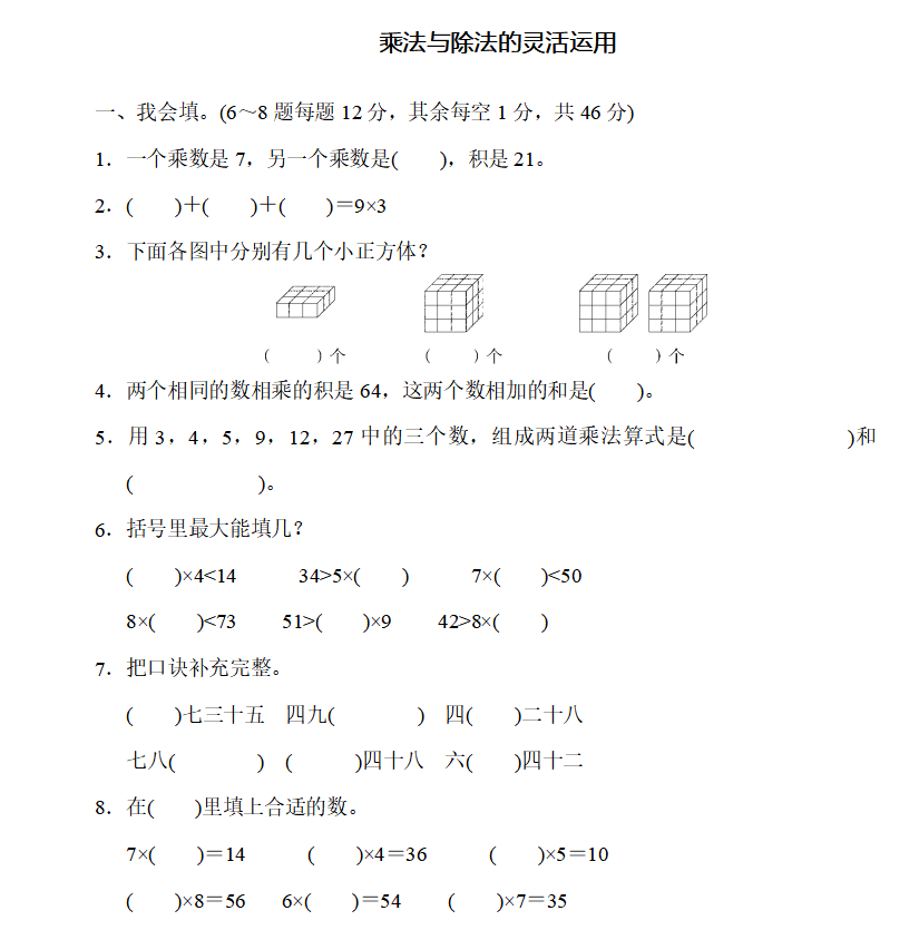 本文含乘除法填空、口诀应用、计算、图形填数及实际应用题,搭配解析与答案,帮助学生灵活掌握乘除运算逻辑,提升综合解题能力,和北京小升初信息网一起看看!以下是部分内容截图预览: