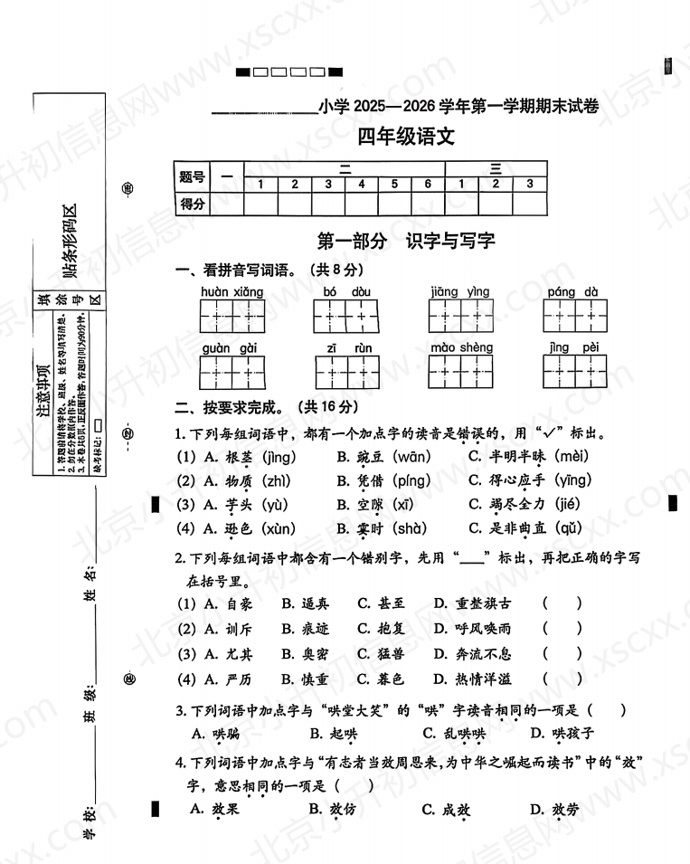 点击下载: 2026北京西城四年级(上)期末语文.pdf