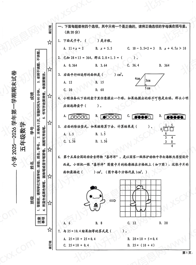 点击下载: 2026北京西城五年级(上)期末数学.pdf