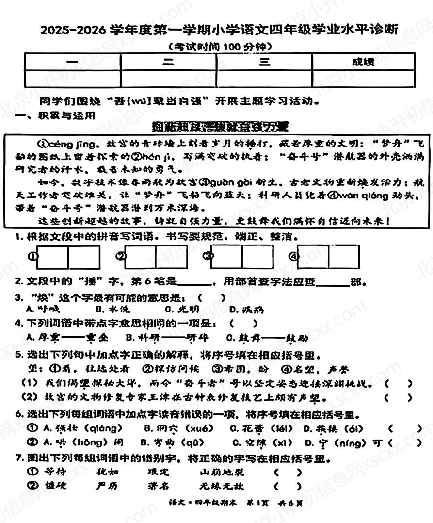 点击下载: 2026北京东城四年级(上)期末语文.pdf