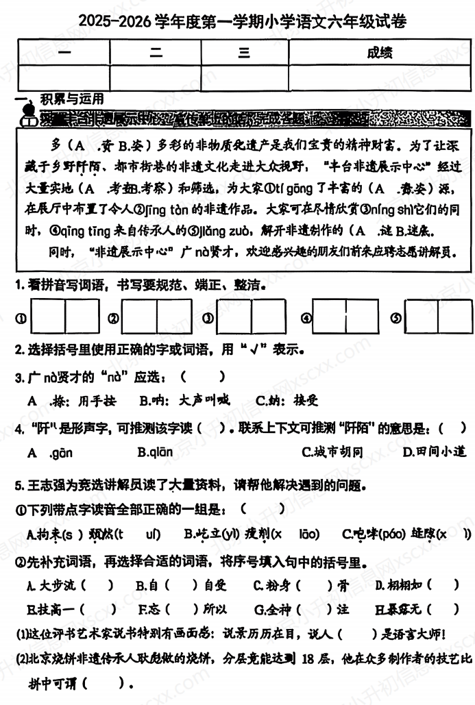 点击下载: 2026北京丰台六年级(上)期末语文.pdf