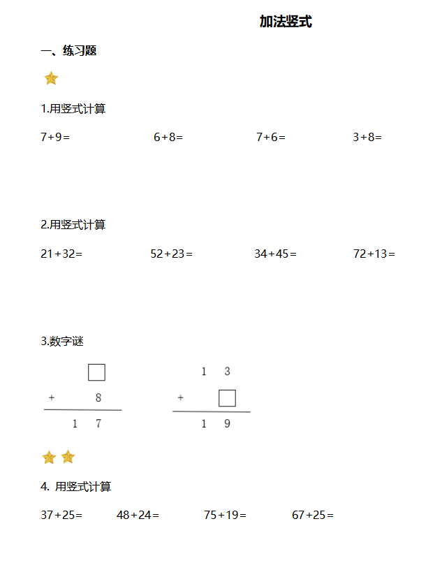点击文件下载: 加法竖式练习(带答案).docx