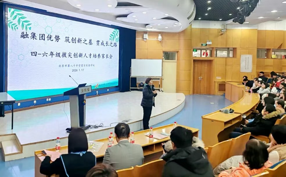 北京市第八十中学望京实验学校以 “信息学助力拔尖创新人才培养” 为主题,召开四至六年级专场家长会。家长代表与学校领导、教师齐聚八十中望京校区,共探信息时代青少年创新能力培养路径,标志着该校依托集团化办学优势,正式启动拔尖人才培养工作。