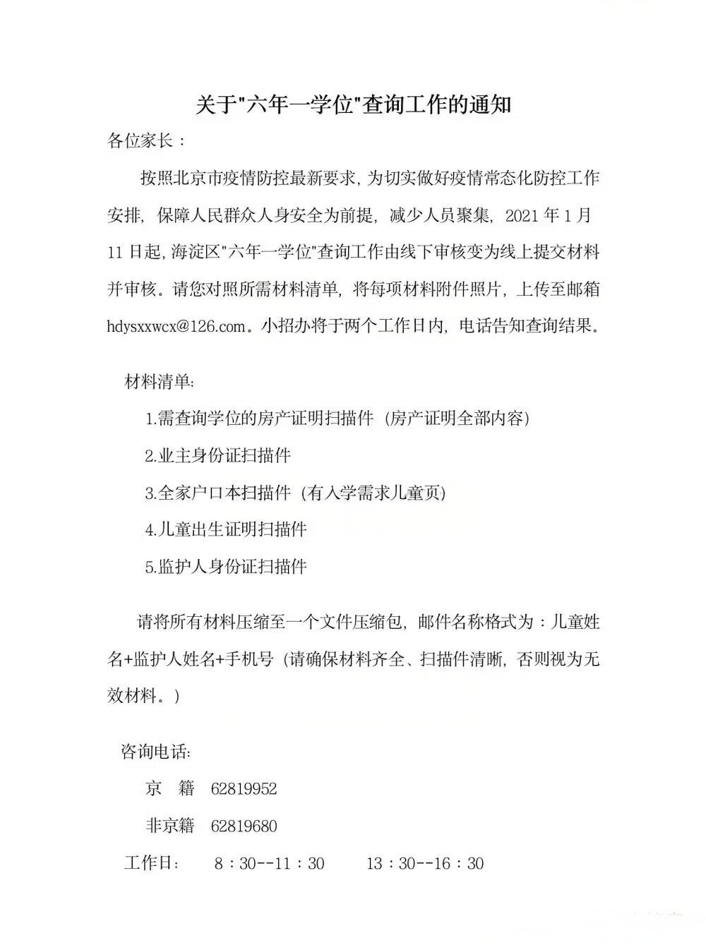 海淀区 “六年一学位” 政策与入学资格直接挂钩,家长购房或租房前务必核查房产学位占用情况。目前主要通过线上邮箱提交材料查询,需准备房产证、业主及监护人身份证、户口本等扫描件,跟北京小升初信息网一起来看看具体情况。