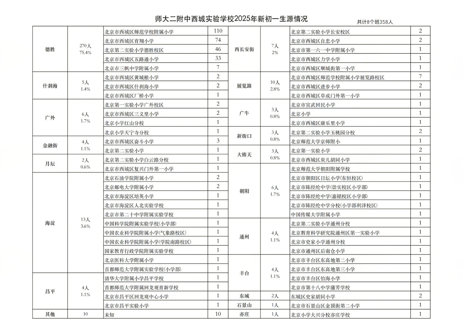北京小升初信息网为大家收集了2025年师大二附西城实验学校新初一生源数据,其中德胜人数领先,具体情况一起来看!