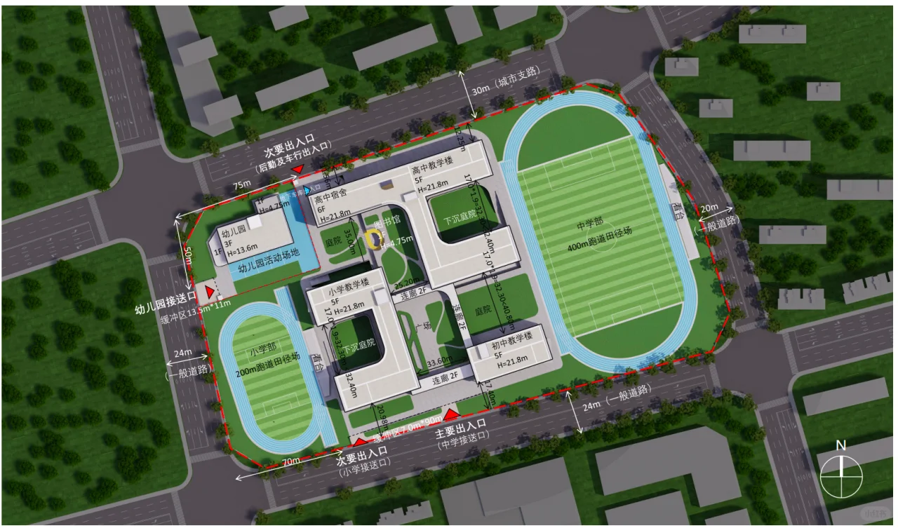 办学规模:72个班的十二年制学校,另设 9个班 的幼儿园